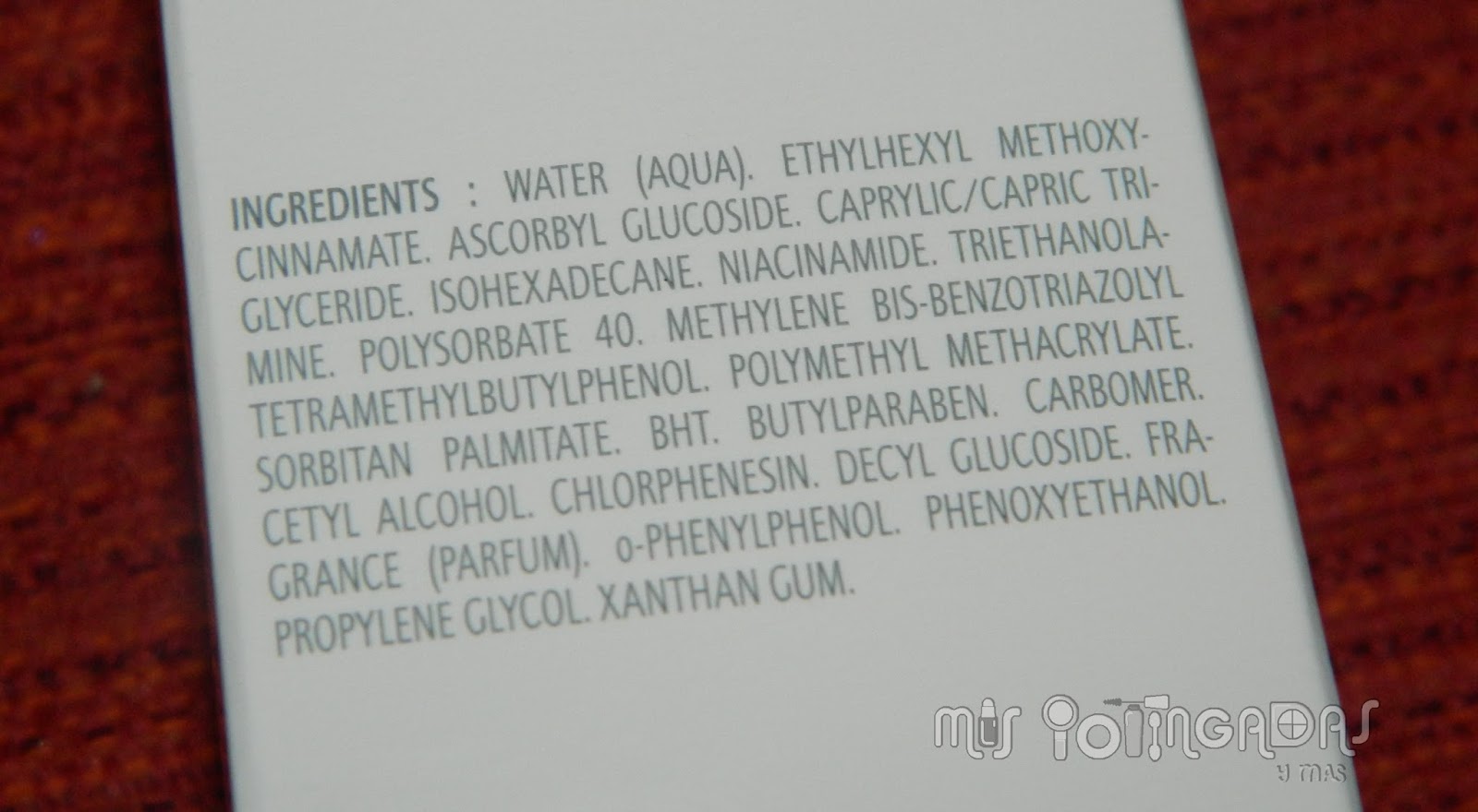 Es la crema que he estado alternando de día con la que os enseñaba hace unos días. Como sabréis por mis fotos, aunque me gustan mucho las bases cubrientes, tengo muchas pequitas por todo el cuerpo, pero también por el rostro. No es algo que me preocupe realmente, pero tengo consciencia que soy más propensa a tener manchas y debo ponerme siempre factor de protección. Os haré mini review de ella porque este tipo de productos hay que probarlos durante mucho tiempo. Me ha gustado su textura ligera y absorbente. No me llaman mucho la atención las hidratantes iluminadoras, ya que tengo la piel grasa y todo lo que sea brillar no me entusiasma; aún así es bastante sutil, y con mi base de maquillaje me gusta el efecto. Ahora mismo he decidido aparcarla para probar otra nueva y en un futuro cuando la termine o en una review aparte, os hablaré mejor de ella.